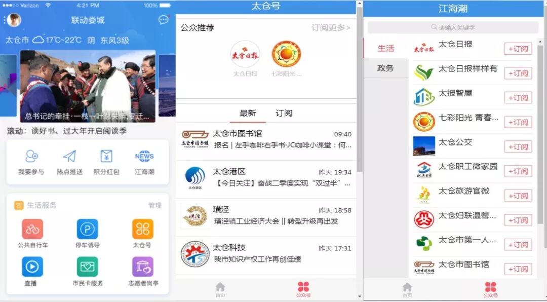 以“联动娄城”APP为例,将此APP作为母平台,建立新媒体发布管理平台,让50多个部门的政务微信入驻“联动娄城”APP,打造全市移动政务服务的聚合平台“太仓号”。