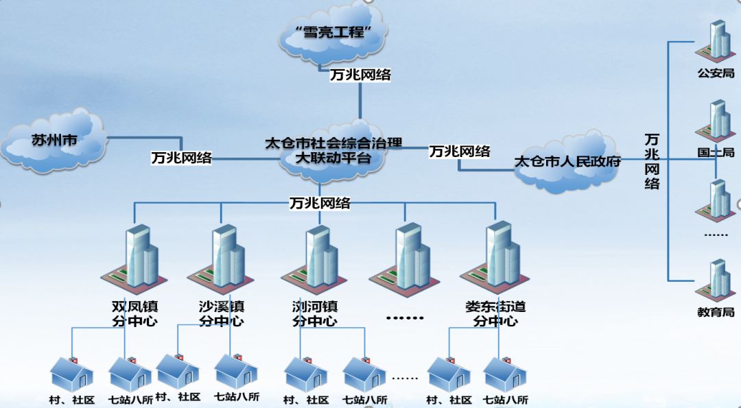 综合治理平台能够展示太仓市社区、政务办理、民生、公安状况等一系列民生相关的实时数据以辅助城市治理工作。