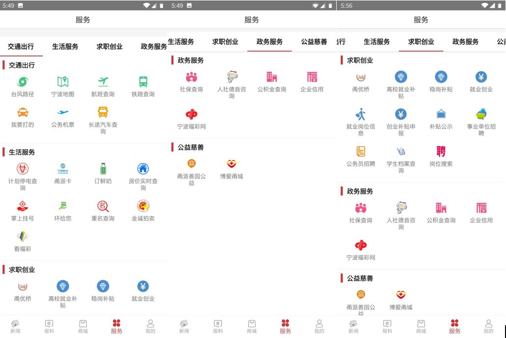 在城市服务模式方面,甬派实现了主流新闻客户端三大首创:首创干部学习培训移动平台、党员廉政考学移动平台、党报公益慈善众筹平台。同时,为服务大学生毕业洽谈会开发的岗位全搜索平台,结合台风报道与信息服务开发的台风路径实时查询平台,结合便利市民运动服务开发的体育场馆掌上预定平台。目前,甬派已与宁波20多个政府相关部门展开洽谈合作,根据用户需求实现“服务整合”,实现移动端股权交易,建设宁波移动端人才招聘最大平台、中小企业补贴申报系统,构建体育惠民系统。